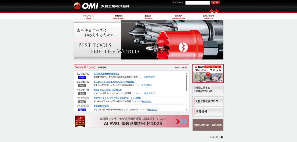 大見工業株式会社は、穴あけ・切断の現場向けに、タケノコドリル(ステップドリル)やクリンキーカッターなどの穴あけ関連工具を展開するメーカーです。用途・被削材に応じた製品情報を公開しており、現場の作業性や効率を高める工具選定がしやすい点が特徴です。