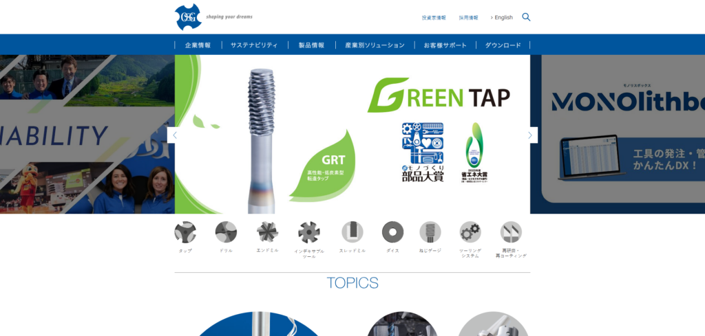 同社の特徴は、タップをはじめとした高いブランド力に加え、ハイス工具を含む幅広い切削工具を自社で展開している点です。総合工具メーカーとして培ってきた製造力と商品ラインアップの厚みを活かし、多様な加工ニーズに対応できる点が強みといえます