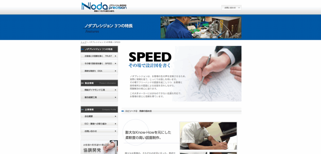 特殊切削工具メーカーのノダプレシジョン株式会社では、自社の特徴として「TRUST」「SPEED」「IDEA」を掲げ、それをもとに高品質の切削工具を提供しています。