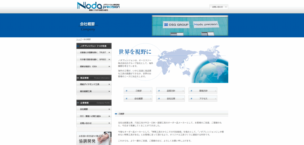 ノダプレシジョンは、切削工具メーカー大手のオーエスジー(OSG)グループの100%子会社です。親会社のバックボーンがあることで、資金や技術面での安定性を確保しています。